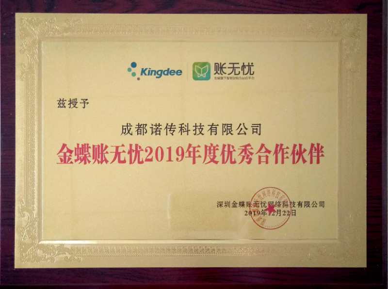 金蝶账无忧2019全国十佳优秀合作伙伴
