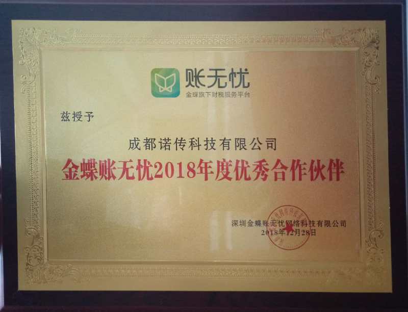 金蝶账无忧2018全国十佳优秀合作伙伴